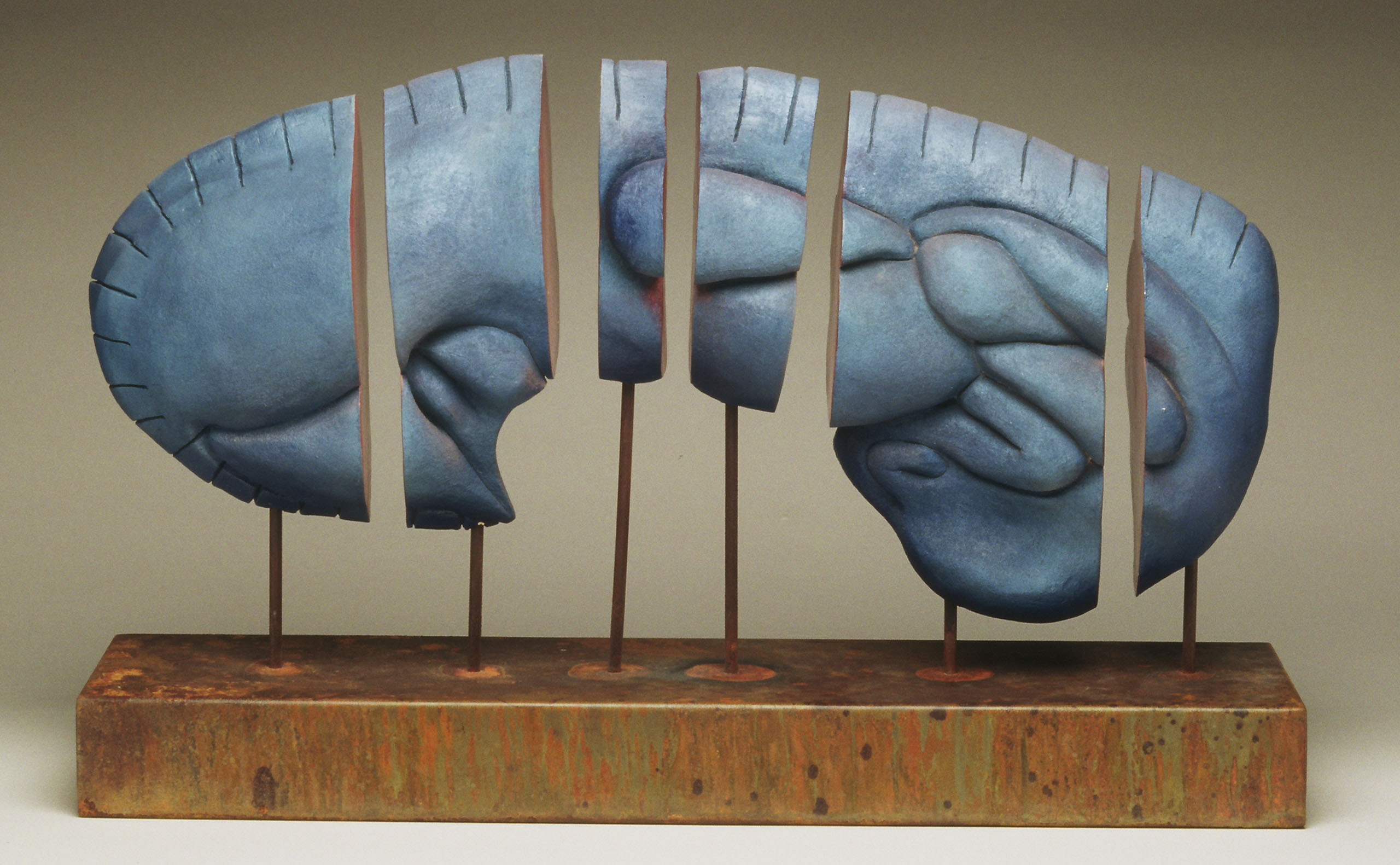 2. Cleave, 8x19x9 inches, Ceramic, encaustic and rubber